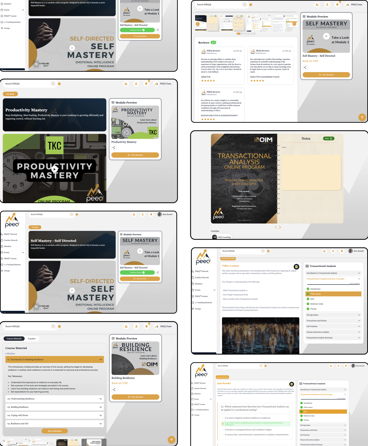 Access purposefully designed, effective online programs that empower teams and professionals to elevate emotional intelligence, leadership, and performance. Created by PEEQ® expert coaches and partners.